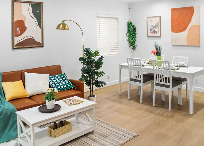 Die Ferienwohnung Modern 2B1B Near Sap, Sjsu, Convention Center verfügt über einen Ankleidebereich und eine Sitzecke, ausgestattet mit einem Sofa und einem Schreibtisch sowie einem Fernsehen mit mehreren Kanälen und einem Flachbildfernseher mit Satellitenkanälen. Es gibt Zimmer mit Parkettböden. Gäste können von 1 Bad mit einer getrennten Toilette, einer Badewanne und einer Dusche profitieren. Darüber hinaus gibt es im Badezimmer einen Haartrockner, einen Wäschetrockner und Toilettenartikel.